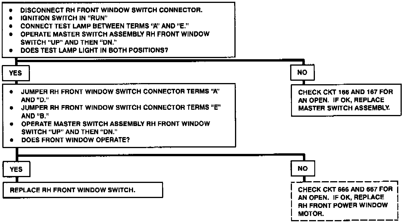 Chart 5: RH Front Window Does Not Operate From RH Front Window Switch Or From Master Switch Assembly: