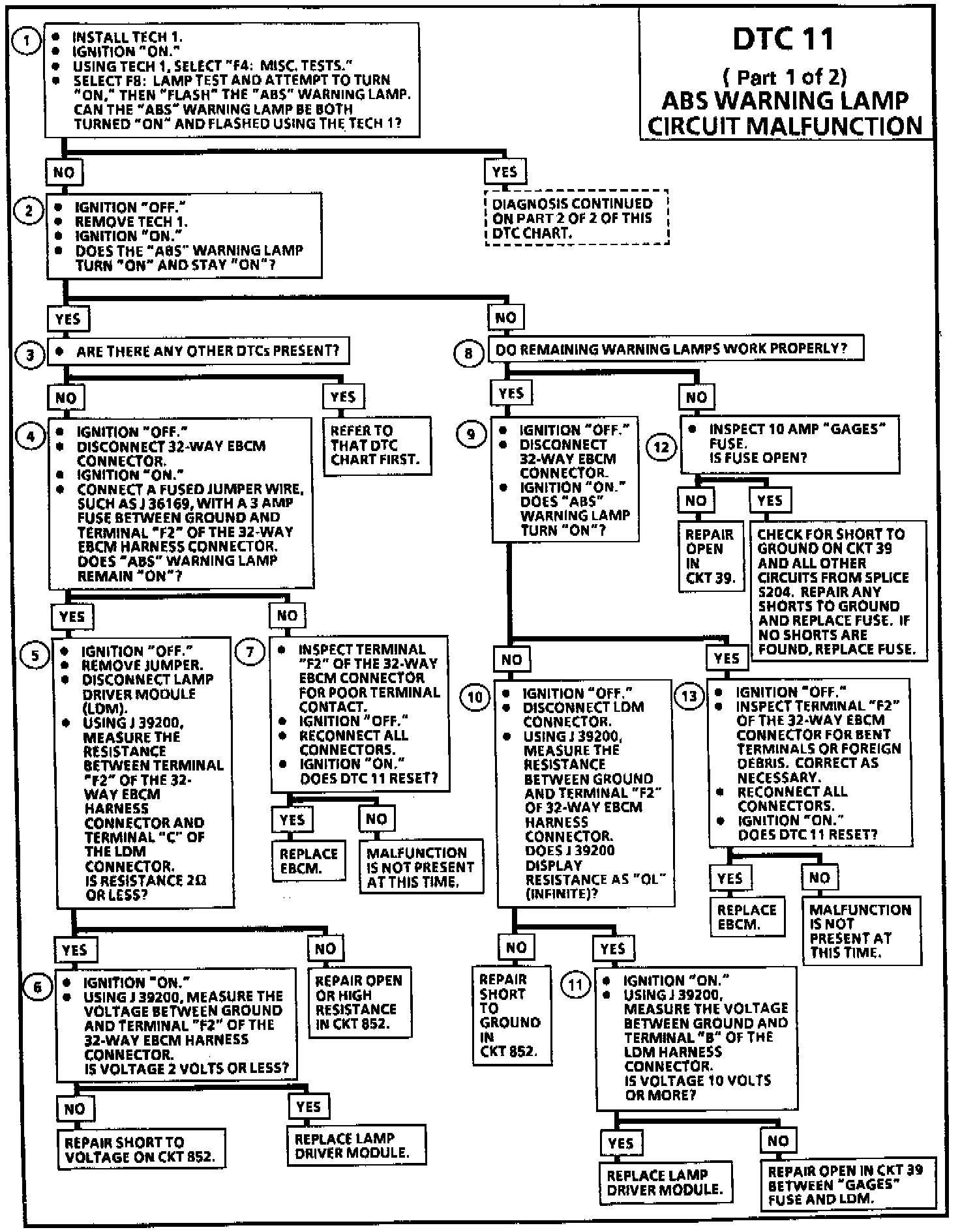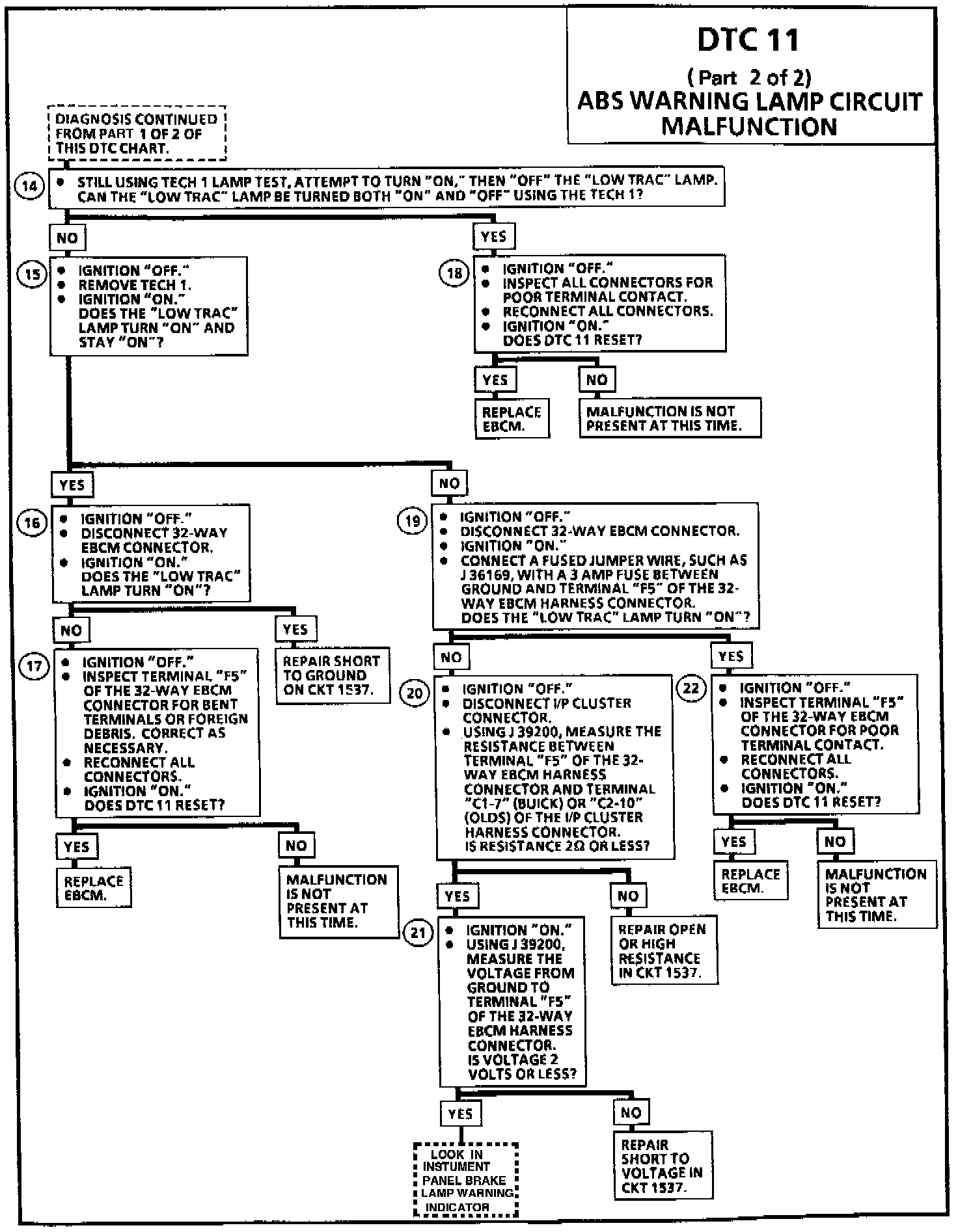 DTC 11 ABS Warning Lamp Circuit Malfunction: