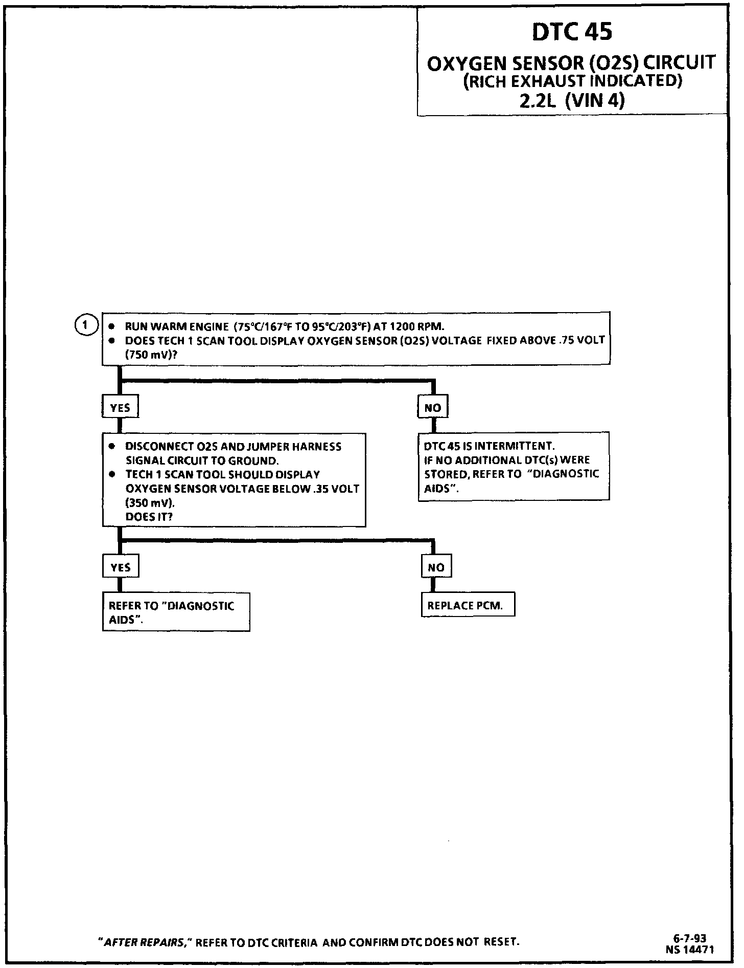 DTC 45 - Oxygen Sensor Circuit (Rich Exhaust Indicated):