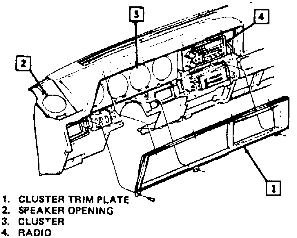 3. Remove screws attaching cluster trim plate, then trim plate, Fig. 10.
