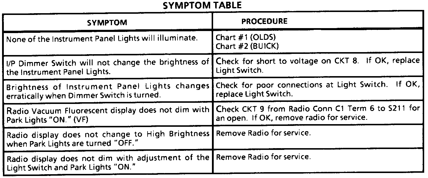 A Symptom Table - Interior Lights Dimming