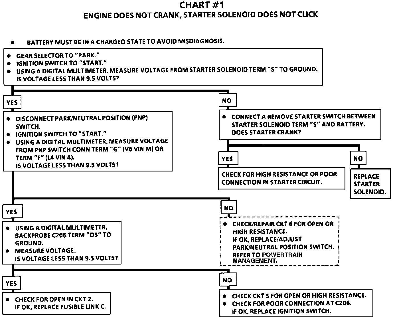 Chart #1 Engine Does Not Crank, Starter Solenoid Does Not Click: