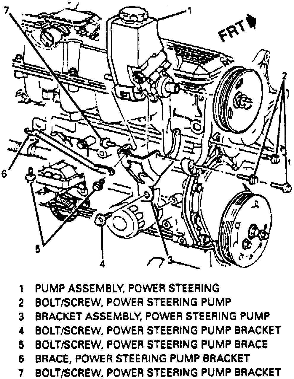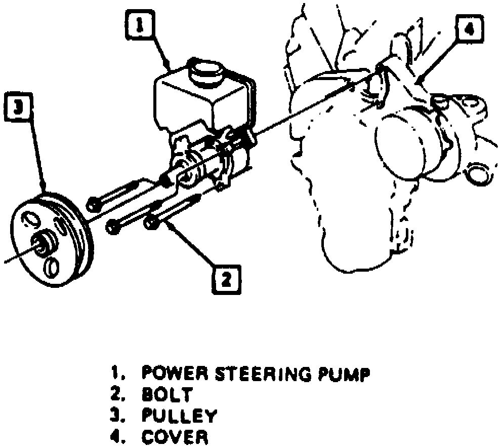 1. Remove serpentine drive belt from pulley, then disconnect power steering lines at pump.