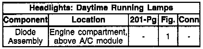This bulletin is being issued to revise the Component Location Table on page 8A-102-2 of the Service Manual. The location for the Daytime Running Lamp (DRL) diode has been revised.