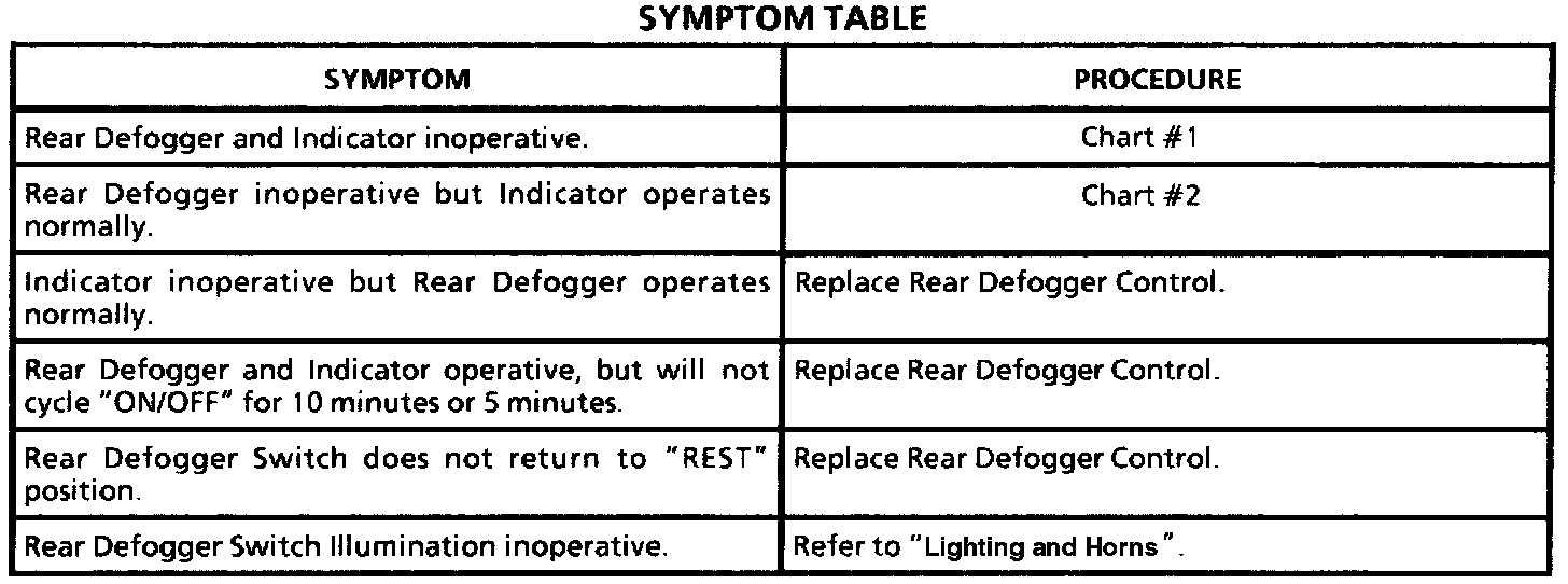 A Symptom Table - Rear Window Defogger & Heated Mirrors (SSE & SSEI Models)