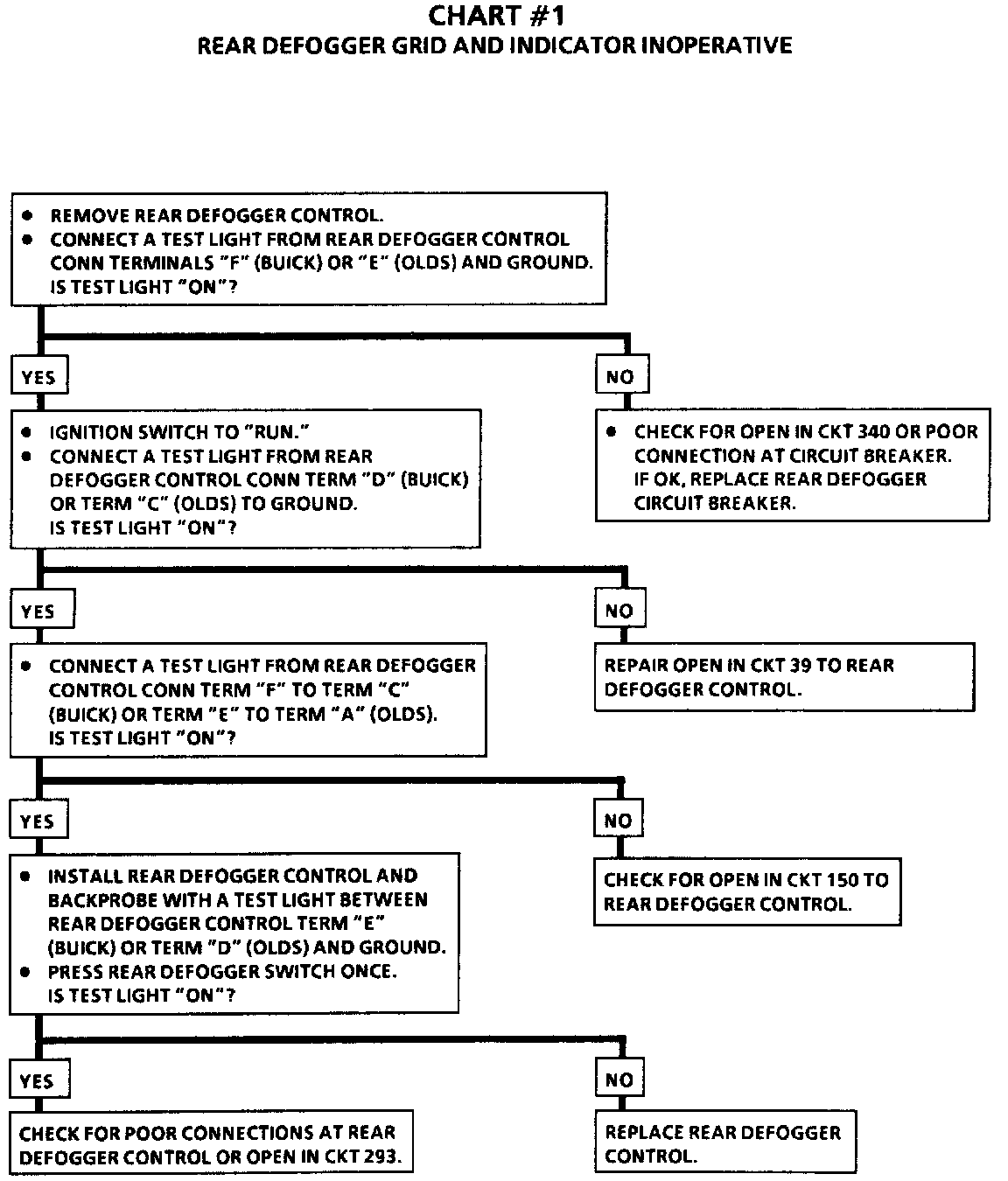 Chart #1 Rear Window Defogger Grid and Indicator Inoperative