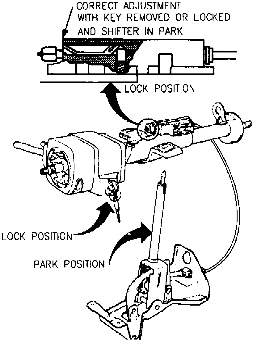 4. With body housing still attached to shift control mounting bracket, adjust outer cable conduit to obtain proper location for white plastic housing in the ignition switch, Fig. 3.