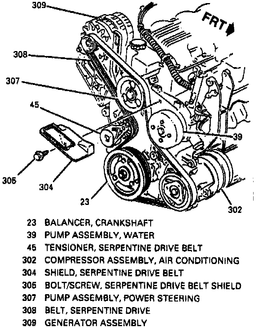 1. Run engine, with no accessories on, until normal operating temperature is reached. Turn engine off and read belt tension using belt tension gauge tool No. J-23600-B, or equivalent. Place gauge halfway between alternator and power steering pump.