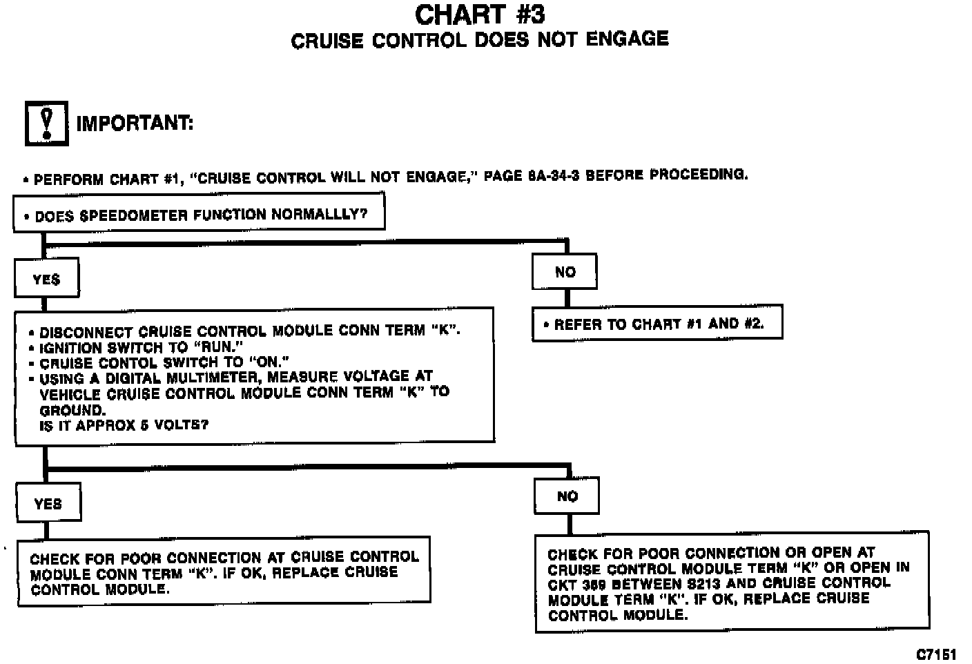 This bulletin contains revisions to Section 8A-33. Chart # 3, Cruise Control Does Not Engage to be inserted.