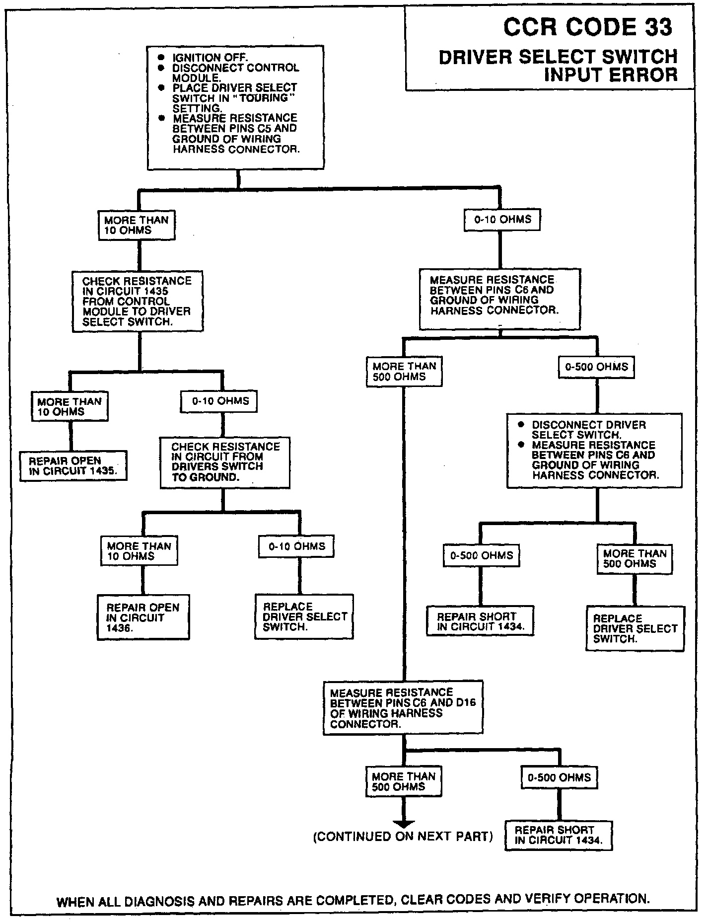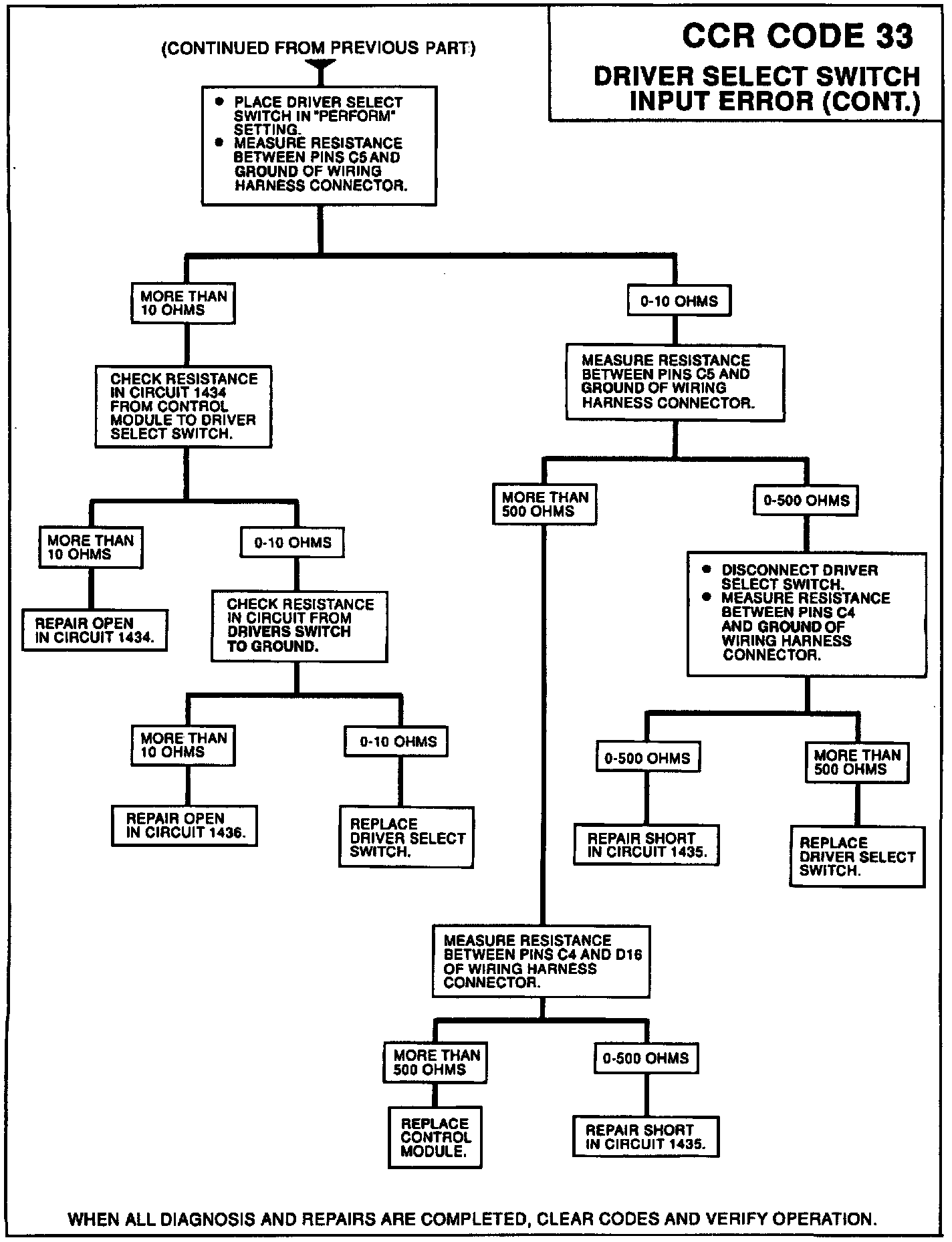 A driver select switch input error is detected when both switch inputs (connector pins C5 and C6) are asserted (grounded) or both are unasserted (open) for more than 3.0 seconds consecutively. If a driver select switch input error is detected, the system will default to the "Normal" switch setting and set code 33.