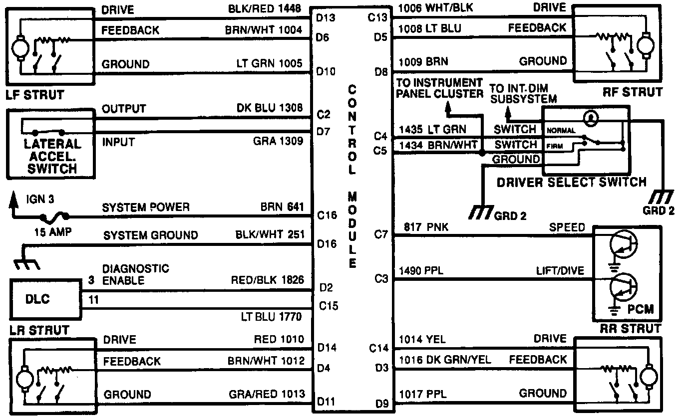 Check driver select switch input pins for valid input combination: (1) pin C4 ("Normal" input) grounded and pin C5 ("Firm" input) open, or (2) pin C4 open and pin C5 grounded.