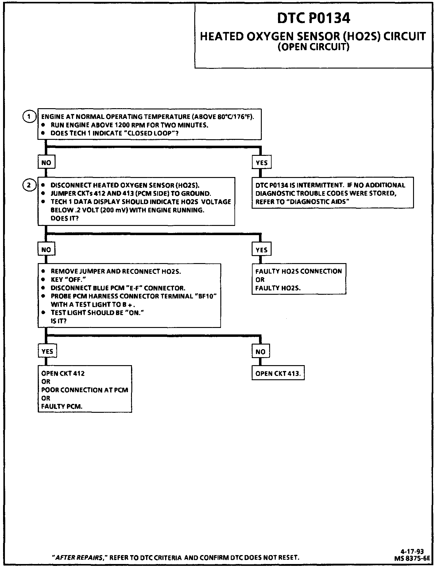 Code P0134, Heated Oxygen Sensor (HO2S) Circuit (Open Circuit):