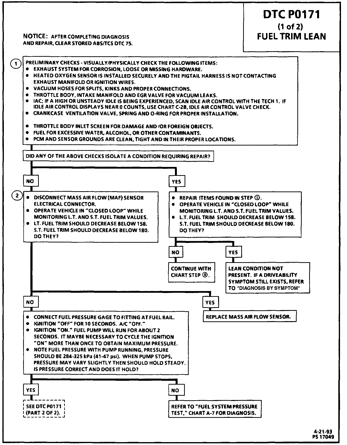 If the problem still cannot be isolated, try monitoring L.T. fuel trim and fuel trim cell while operating the vehicle under various loads. This may isolate the condition which caused P0171 to be set.
