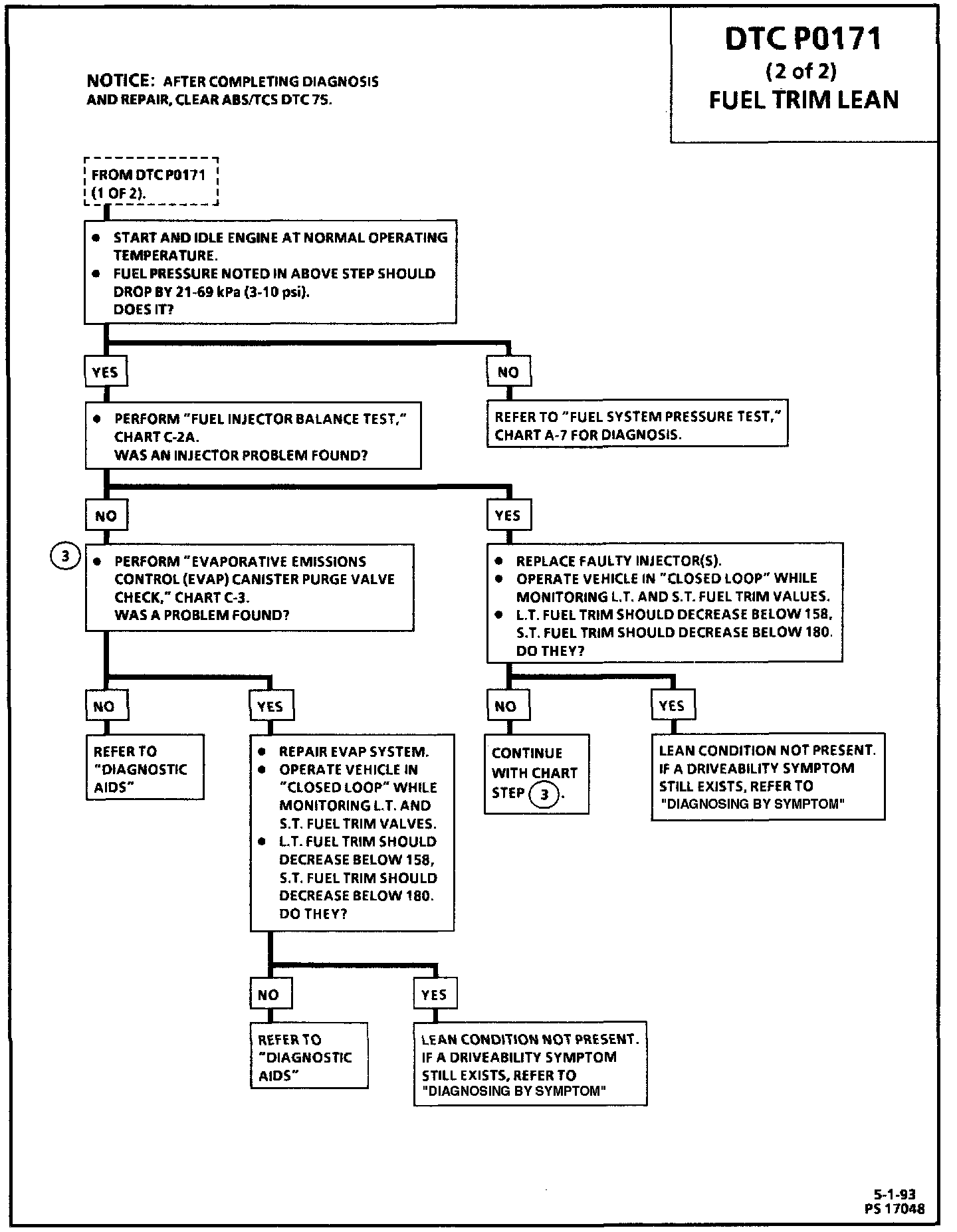 NOTE: A trip is not considered complete until the fuel trim diagnostic has been run by the PCM. To complete a trip cycle for the fuel trim diagnostic, test must be enabled and run according to the "DTC P0171 Will Set When" criteria above.