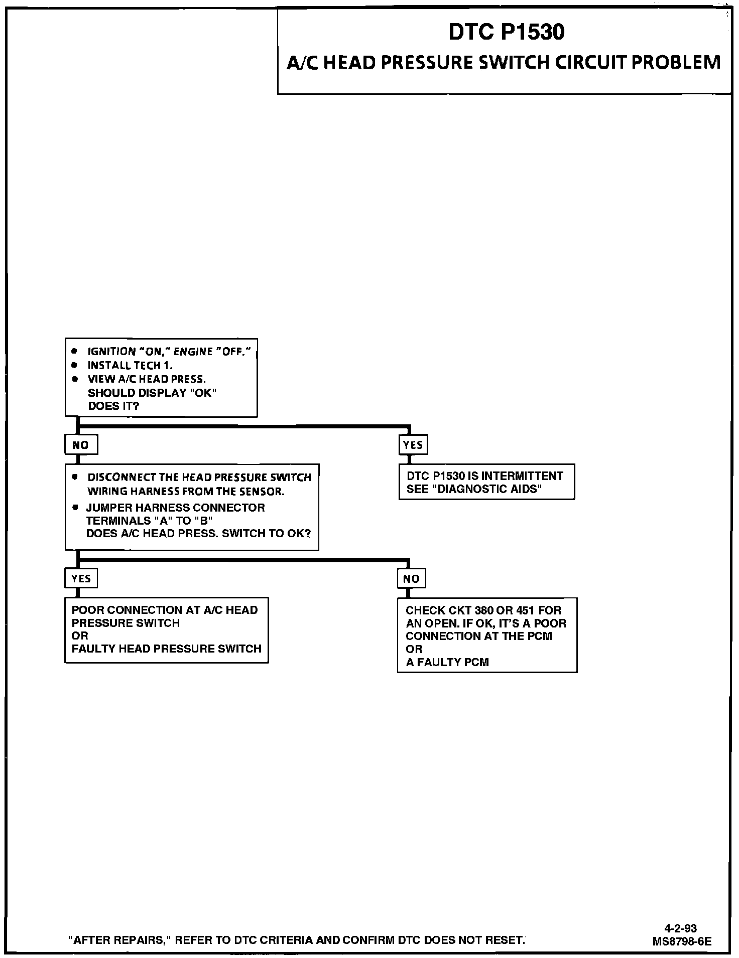 If current DTC P1530 is set, the left side cooling fan will run at high speed anytime A/C is requested. DTC P1530 does not illuminate the MIL (Service Engine Soon).