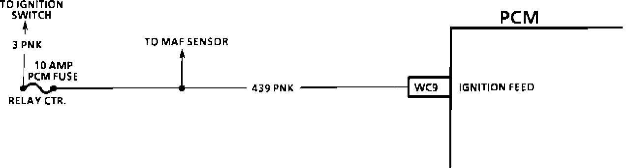 ^ Intermittent test - Monitor SYSTEM VOLTAGE display with a Tech 1 while moving related connectors. If the failure is induced, the display will abruptly change. This may help to isolate the location of the malfunction. An engine stall while manipulating the harness indicates that the PCM has lost voltage at terminal "WC9". Check for loose connectors in CKT 439.