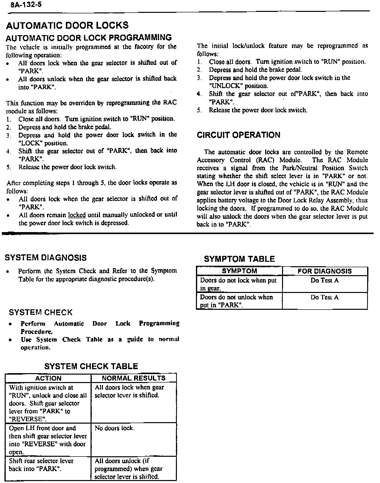 Section SA-132 - Revised Information for Remote Keyless Entry, Automatic Door Locks