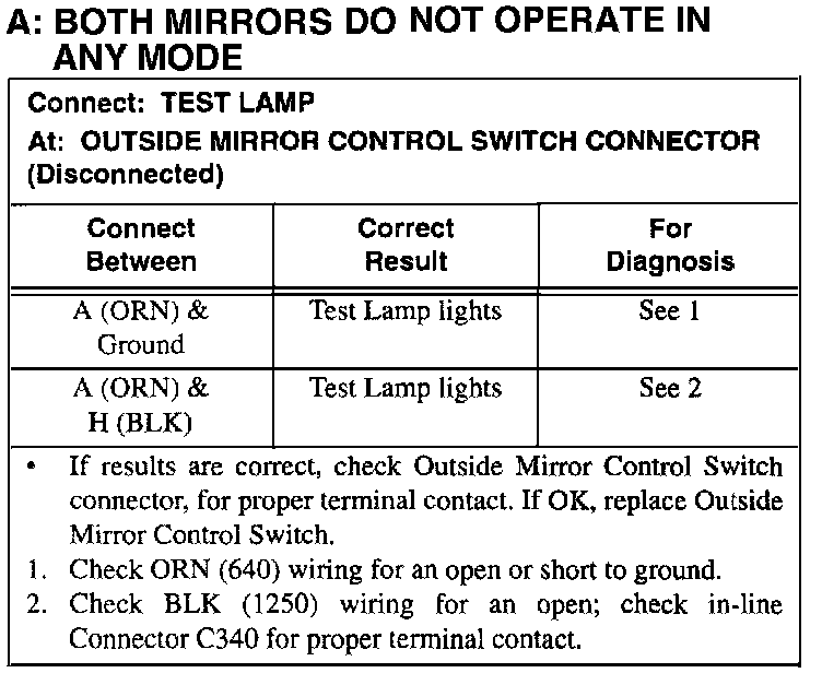 Test A: Both Mirrors Do Not Operate In Any Mode