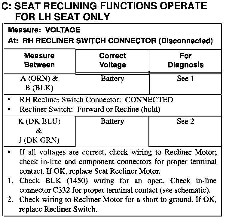 C: Seat Reclining Functions Operate For LH Seat Only:
