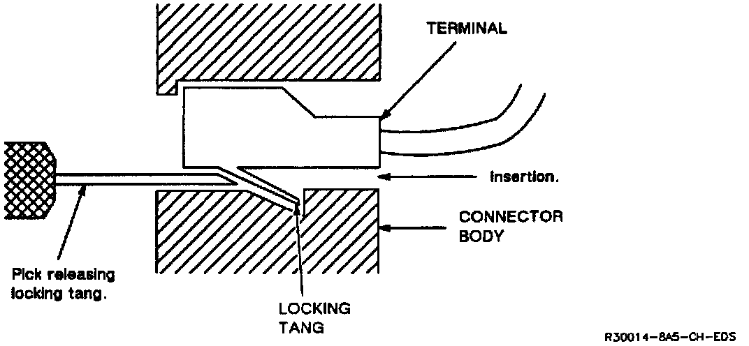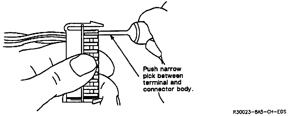 2. Release terminal using proper pick or removal tool. Gently pull cable and terminal out of the back of the connector.