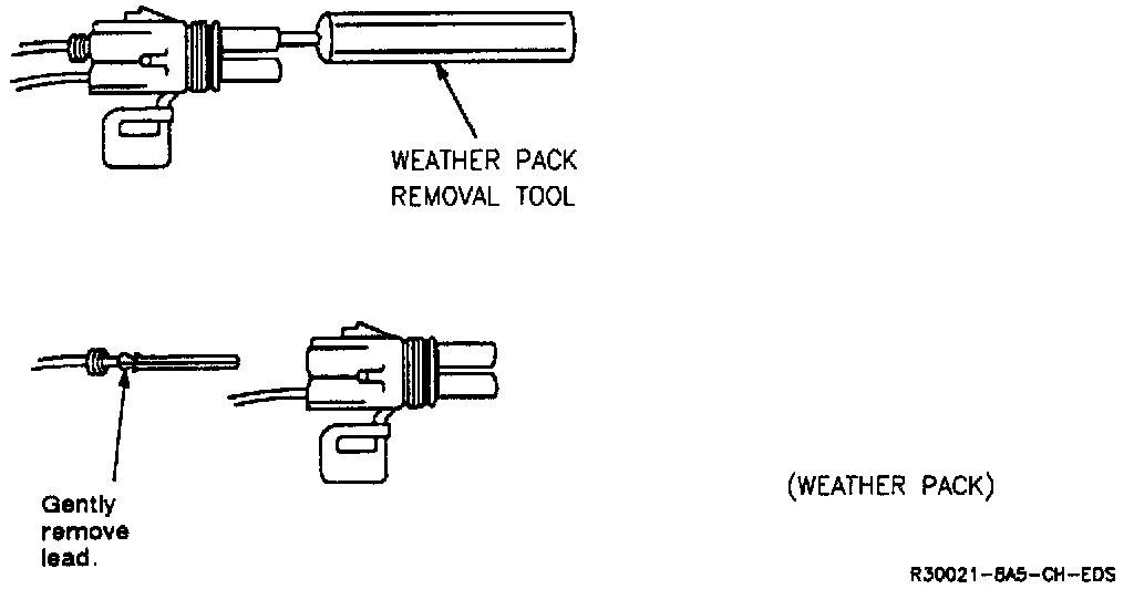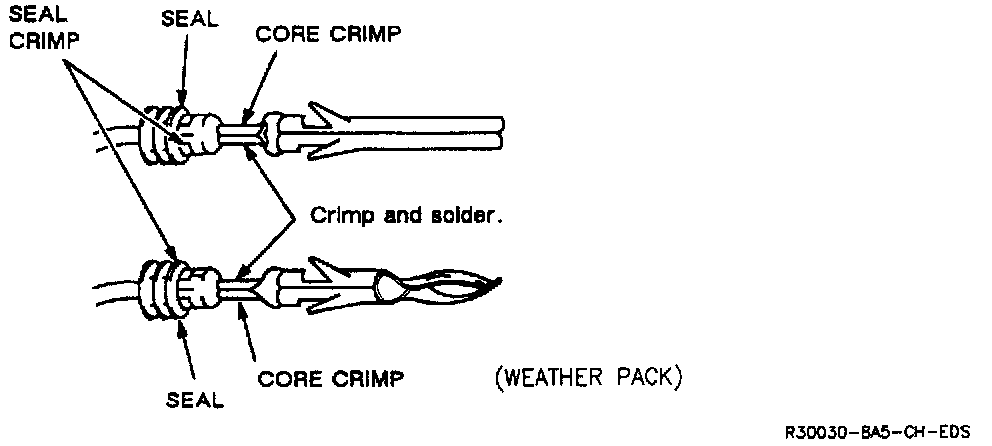 5. To re-use a terminal or lead assembly, refer to Splicing Copper Wire. Be sure to keep cable seal (if equipped) on the terminal side of splice. Insert lead from the back until it catches.