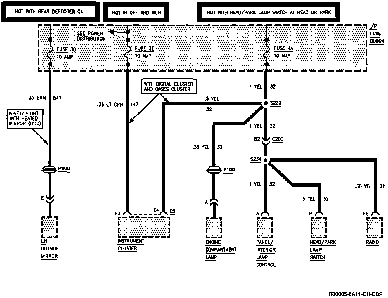 I/P Fuse Block Fuses 3D, 3E And 4A: