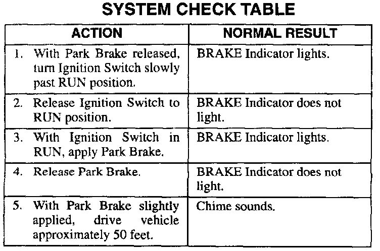 Use System Check Table as a guide to normal operation.