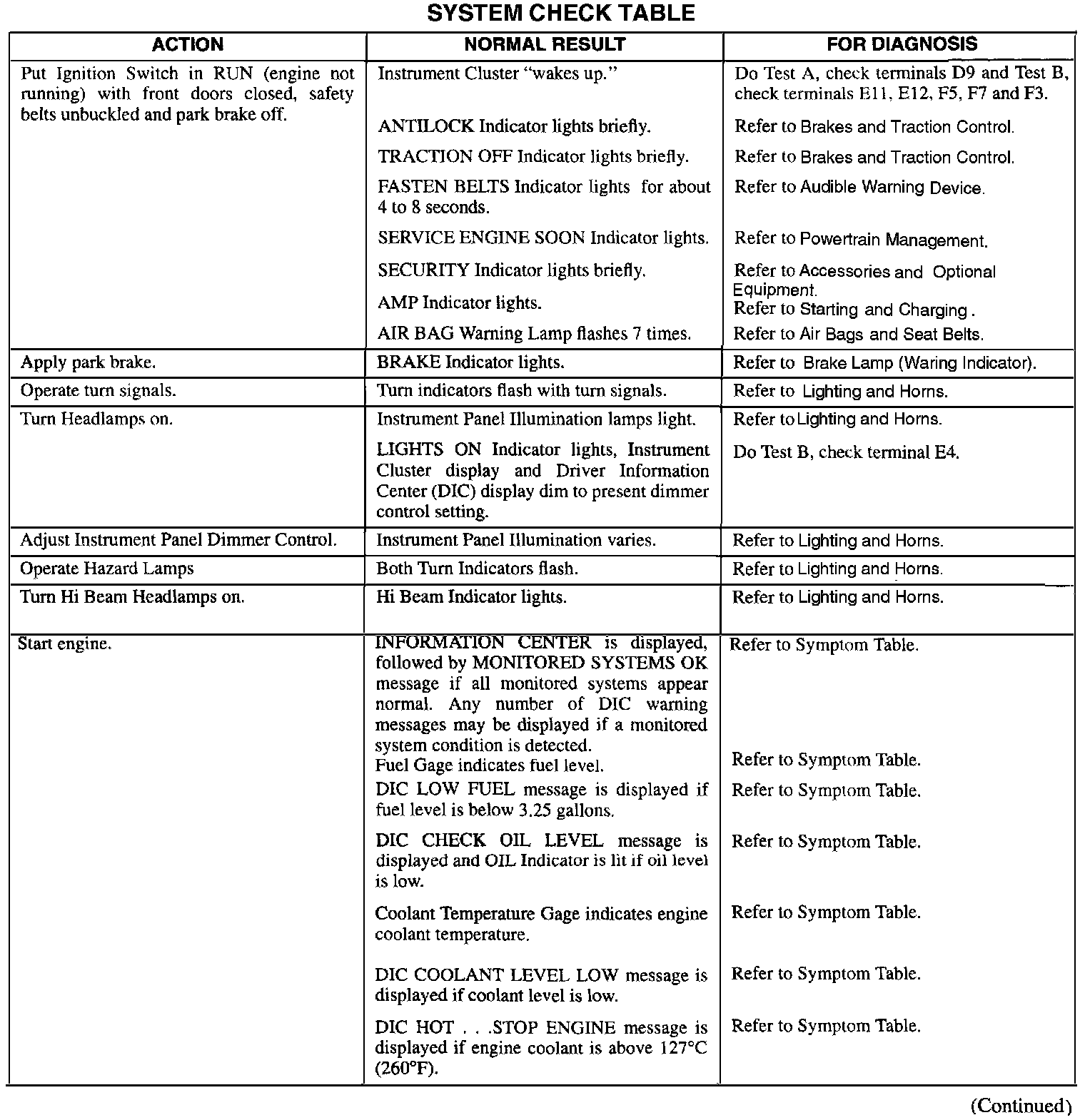 ^ Use System Check Table as a guide to normal operation. Refer to System Diagnosis given if other results occur.