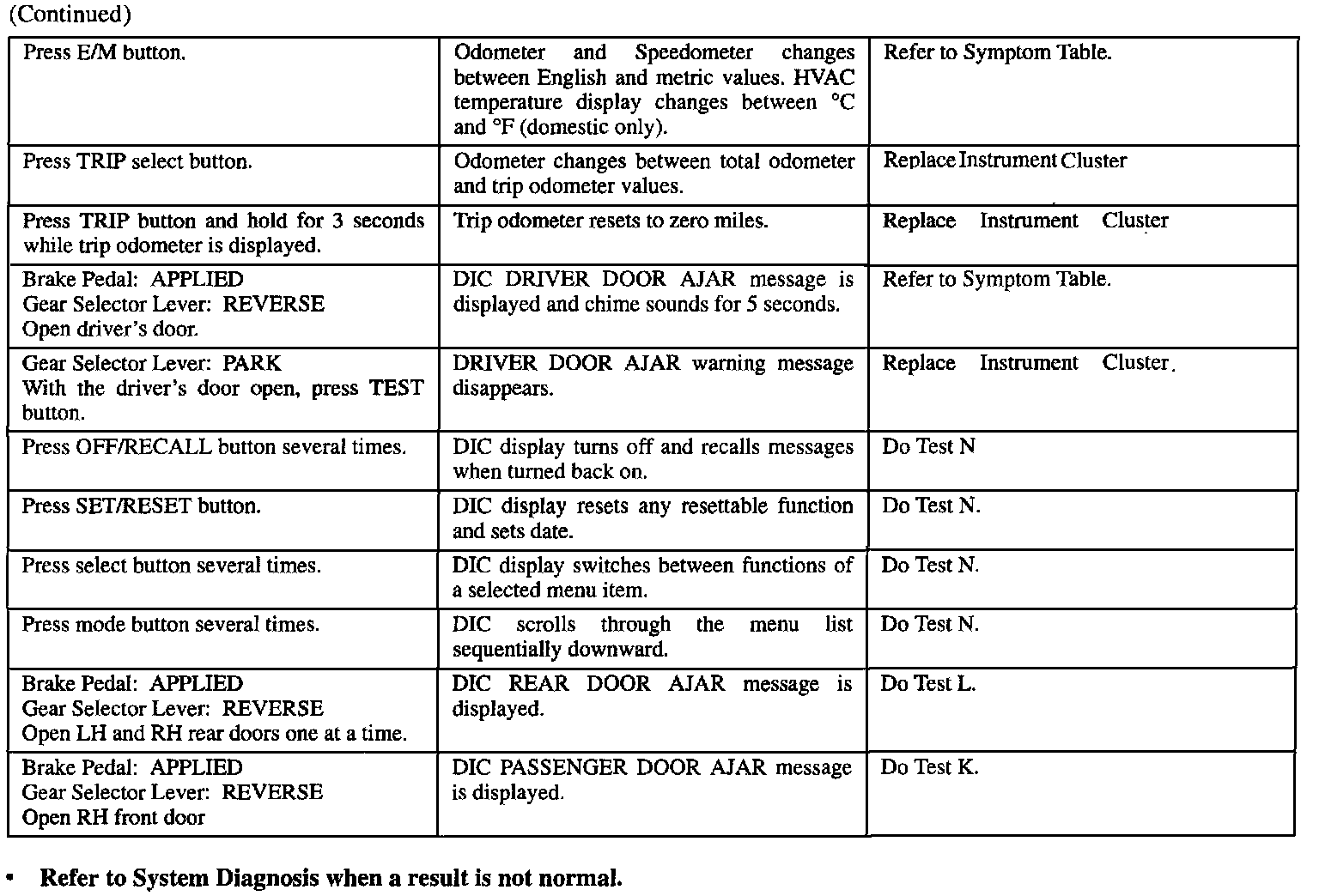 ^ Refer to System Diagnosis when a result is not normal. System Diagnosis - Digital Cluster