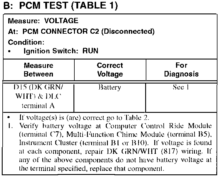 B: PCM Test (Table 1):