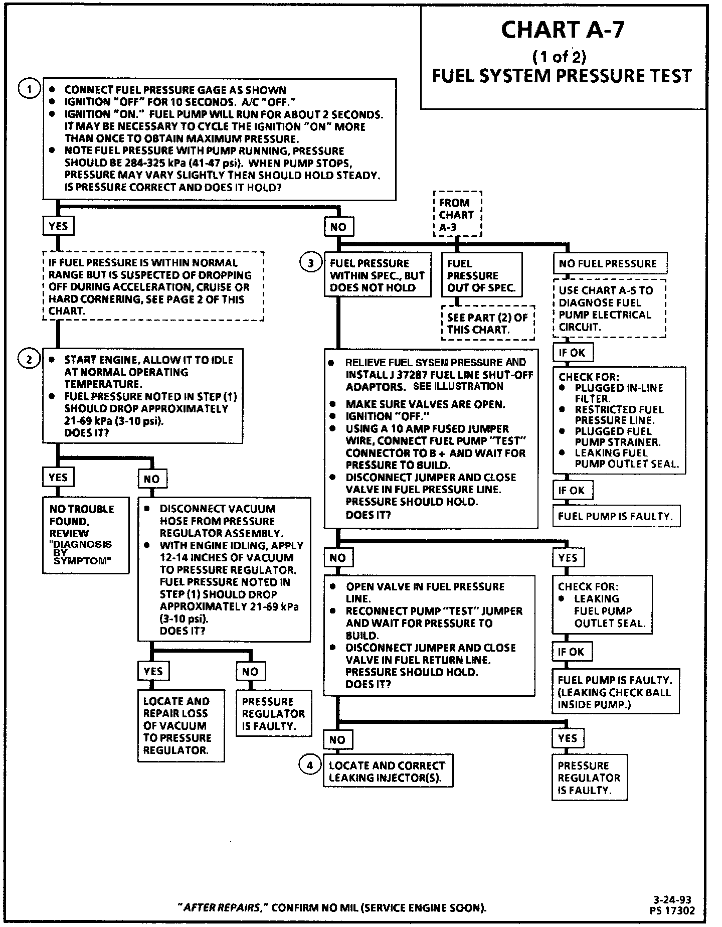 Diagnostic Chart A-7, Fuel System Pressure Test (Part 1 Of 2):