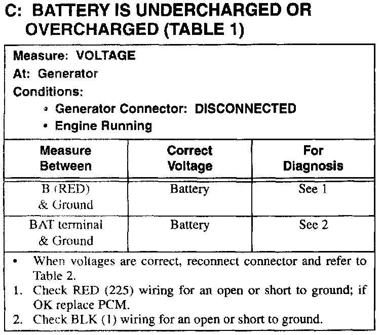 C: Battery Is Undercharged Or Overcharged (Table 1):