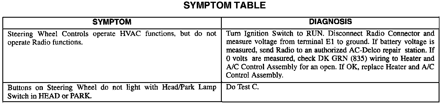 Symptom Table: