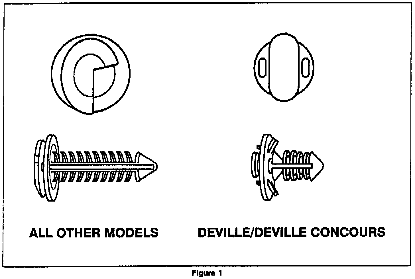 The original equipment retainers are black in color while the replacement retainers, P/N 20451401, are white In color. (Does not apply to Concours and DeVille).