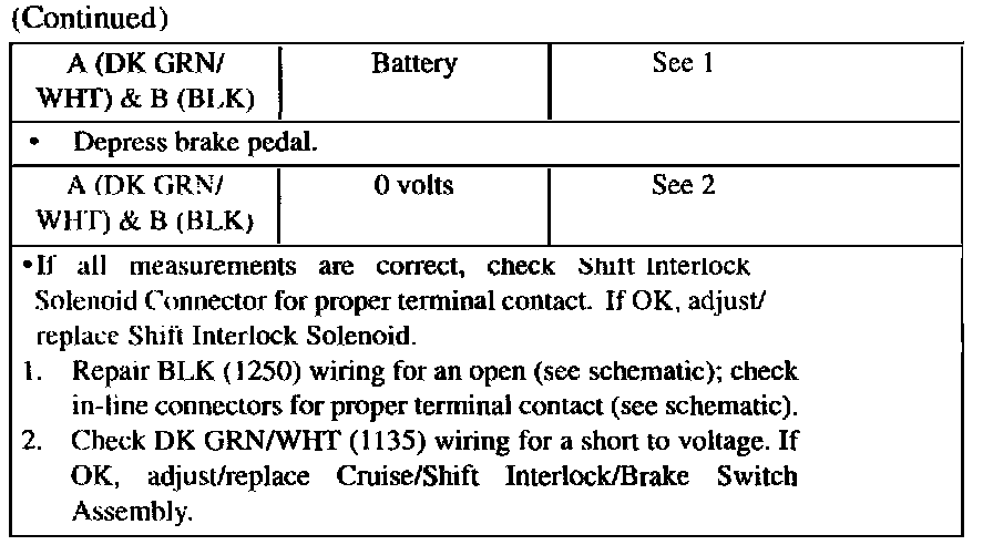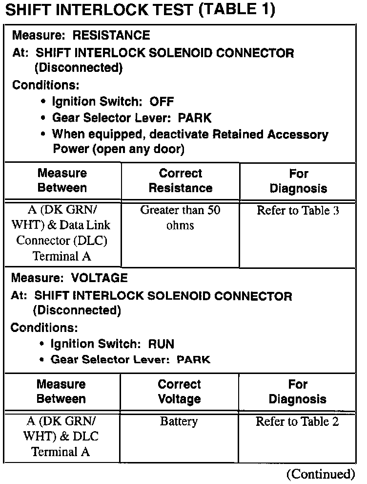 Shift Interlock Test (Table 1) (Part 2 Of 2):