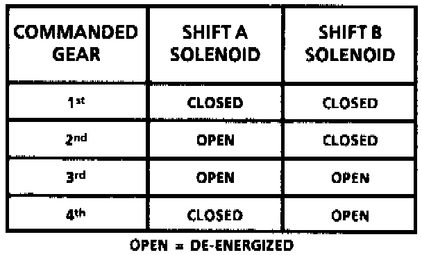 The 4T60E transaxle uses shift "A" and "B" solenoids to control transaxle shifting. Refer to table for solenoid operating sequence.