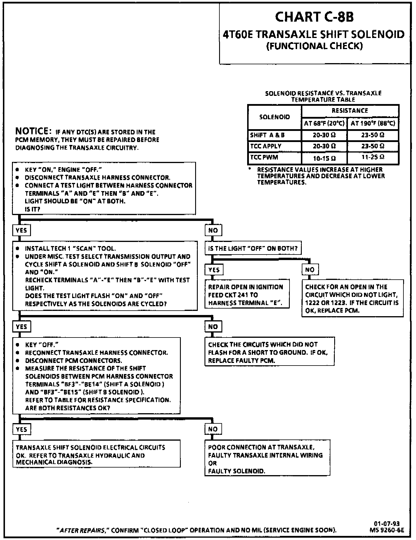 Chart C-8B, Shift Solenoid Functional Check (4T60E Transaxle) Without Transaxle Test Box: