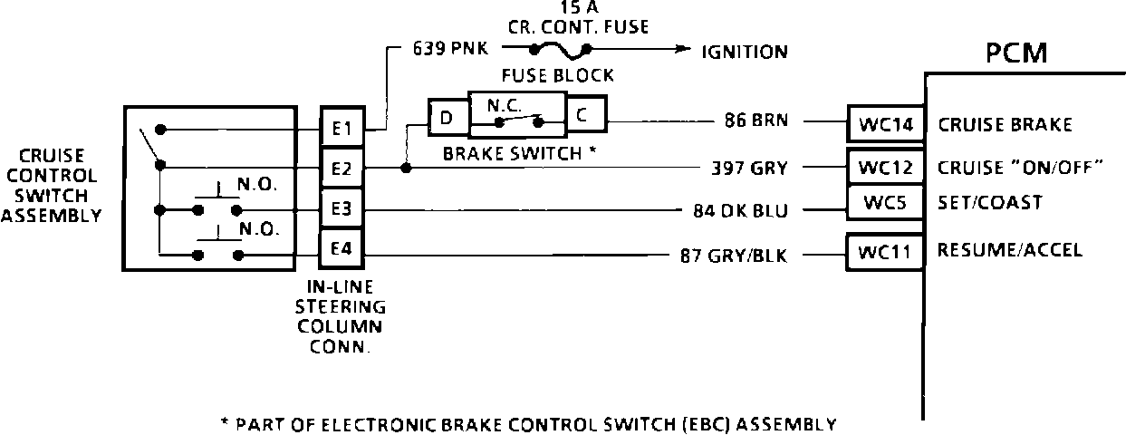 The cruise control switches are used to control the function of the PCM controlled cruise system.