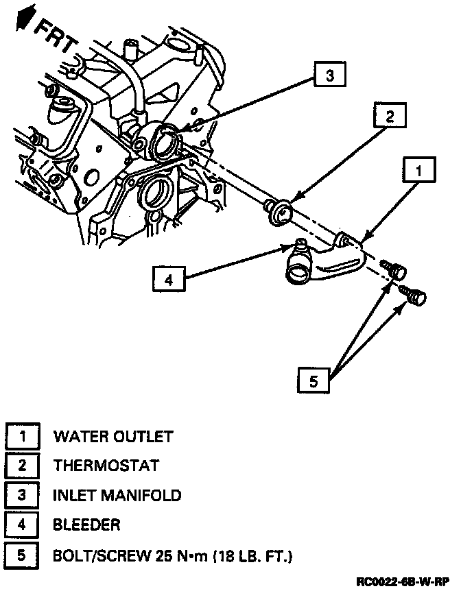 c. Apply a suitable sealer to thermostat housing retaining bolts. Install and torque bolts to 18 ft lb.