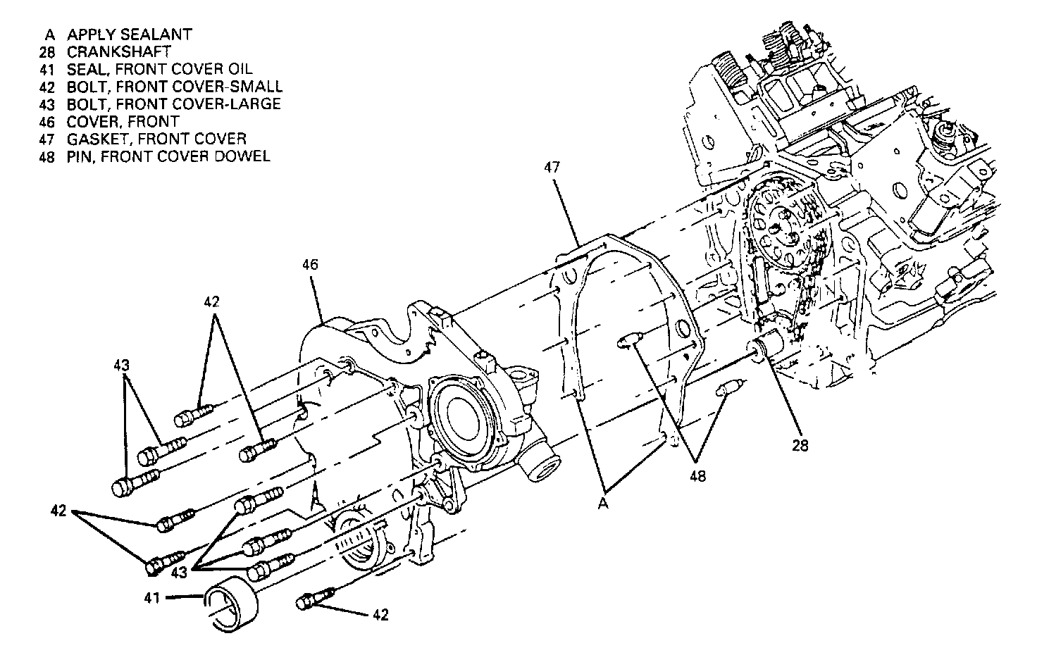 29. Remove the lower front cover bolts.