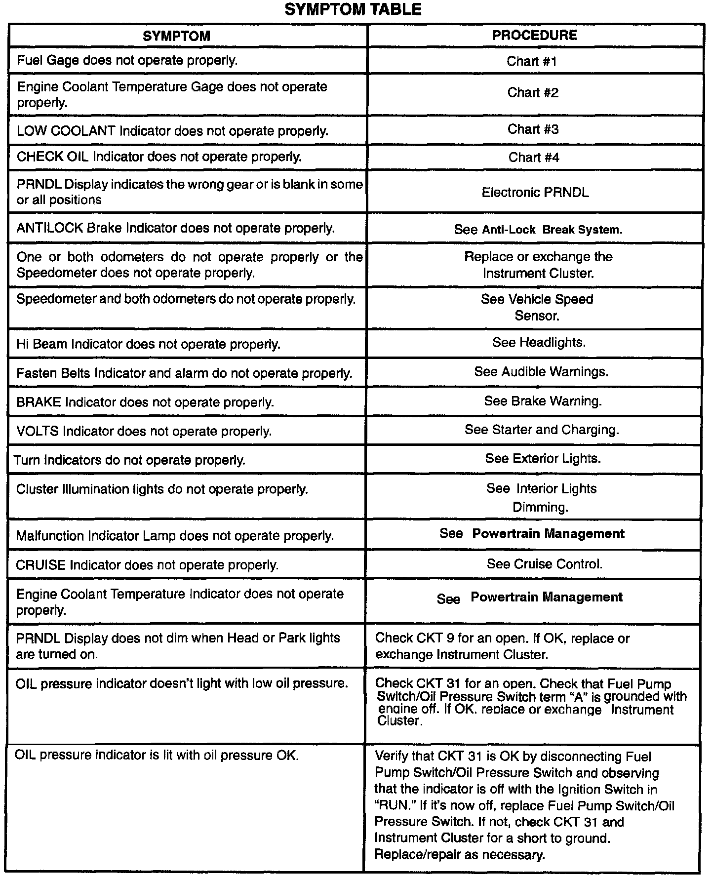 Symptom Table: