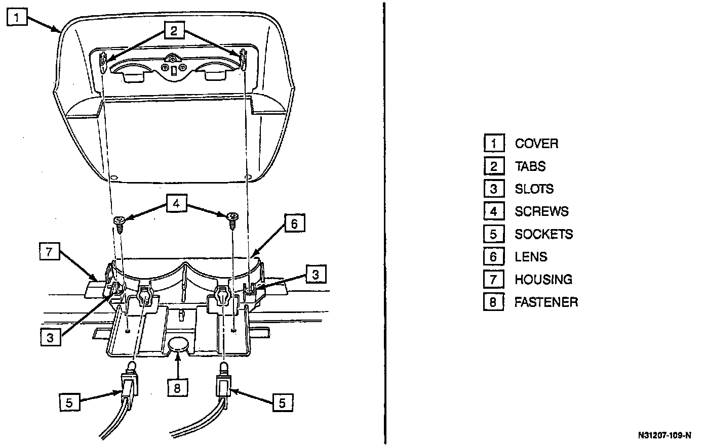 3. Center high mount stop lamp sockets.