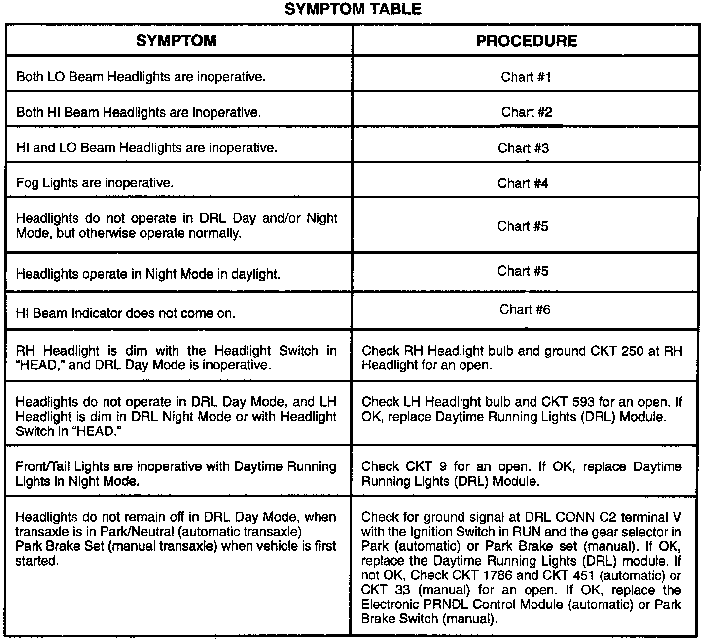 Symptom Table
