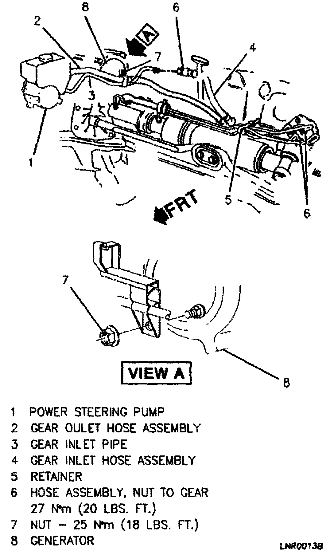 5. Gear outlet hose from rack and pinion steering gear.