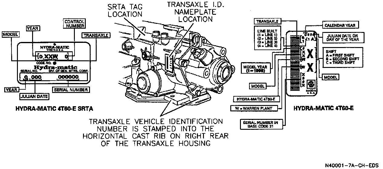 Hydra-Matic 4T60E Transaxle ID And Partial VIN Location: