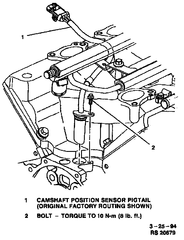 1. Camshaft position sensor. Reroute pigtail under power steering pump and generator pencil brace.