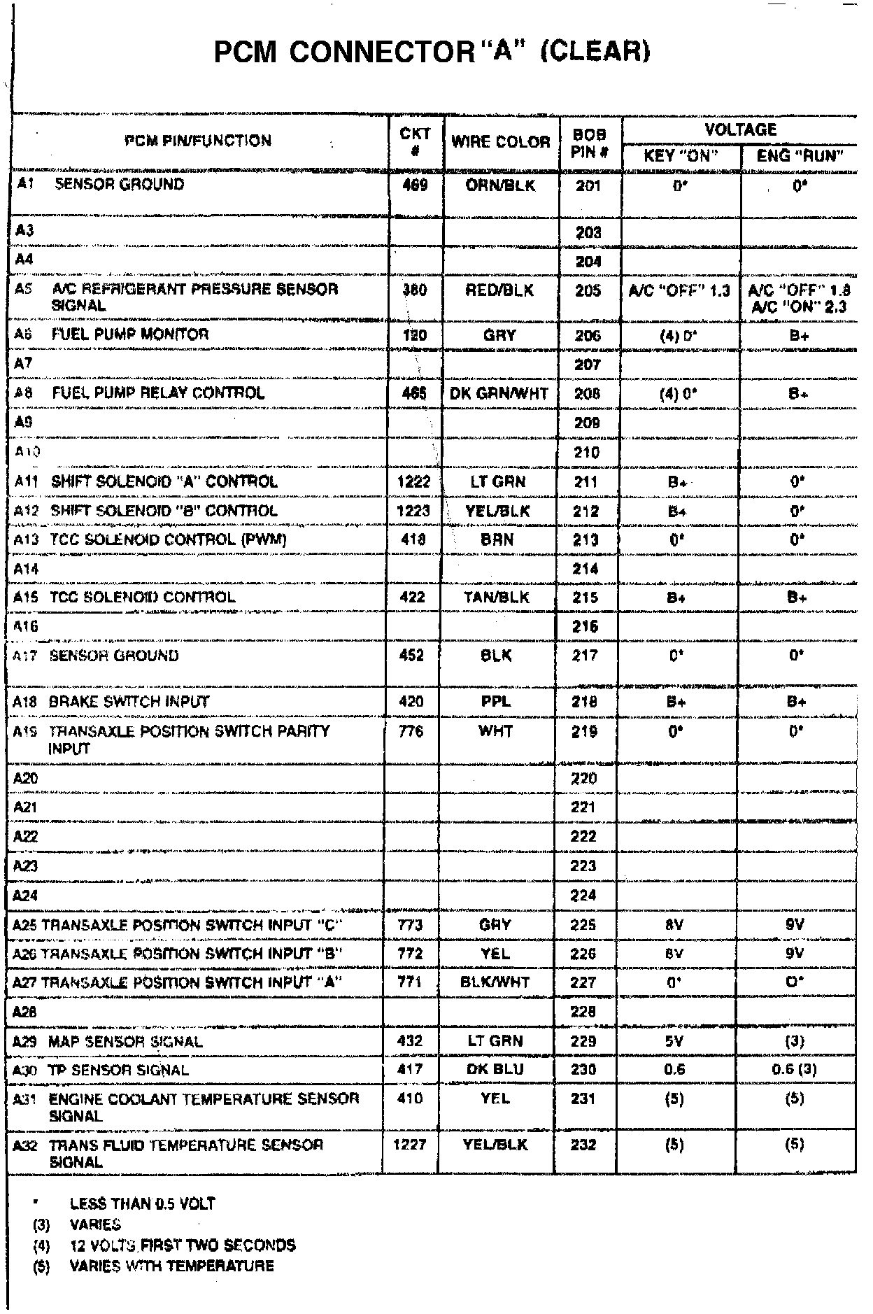 PCM Connector "A" (Clear):