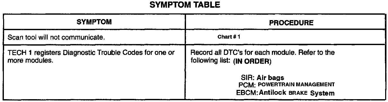 Symptom Table: