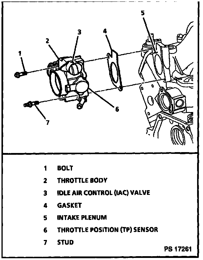 7. Throttle body retaining bolt / stud.