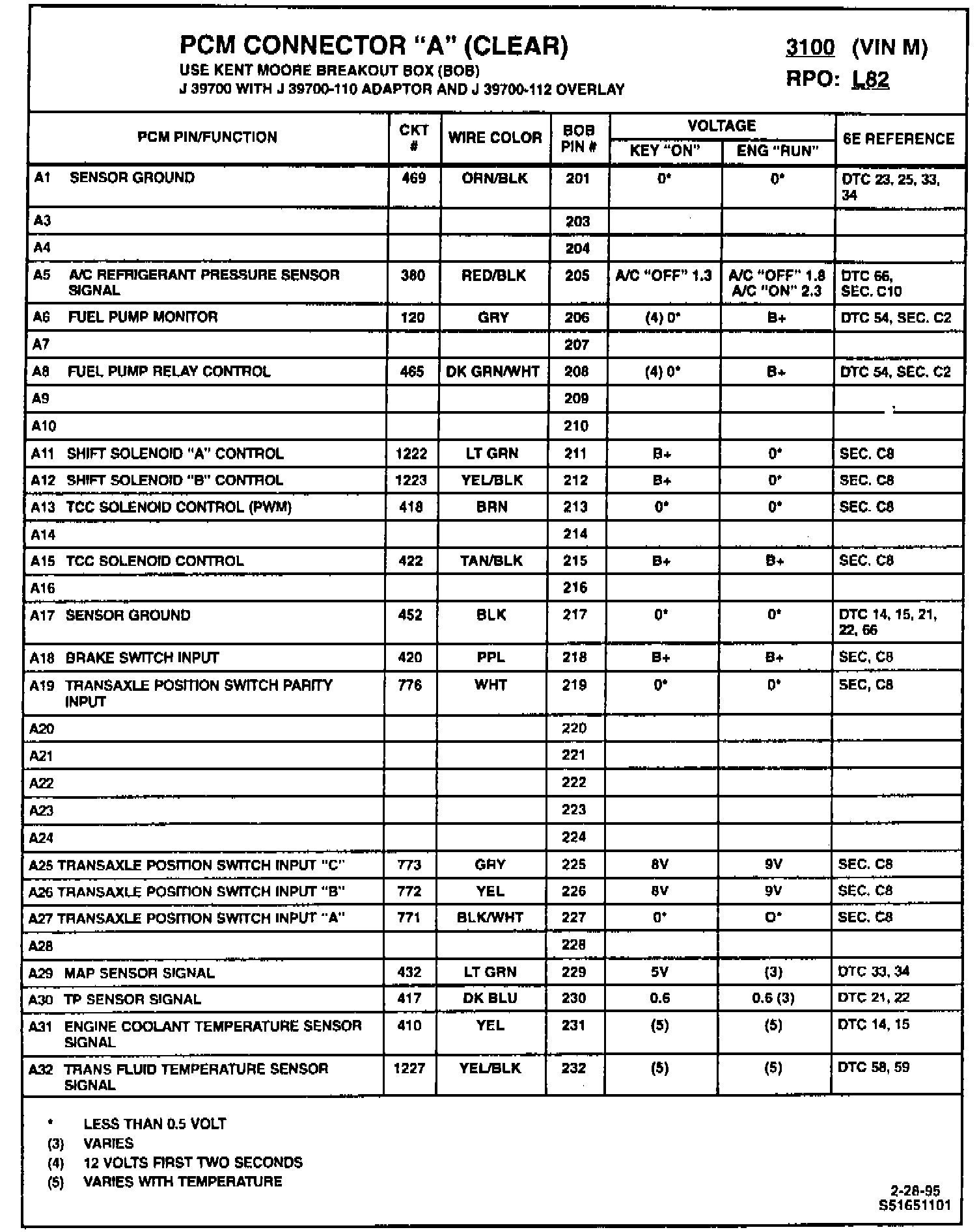 On Page 6E3-A-10 and 6E3-A-11, the PCM "B" black connector is repeated. The PCM "A" clear connector should be placed on Page 6E3-A-1O. Please make changes in the appropriate 1995 Service Manual.
